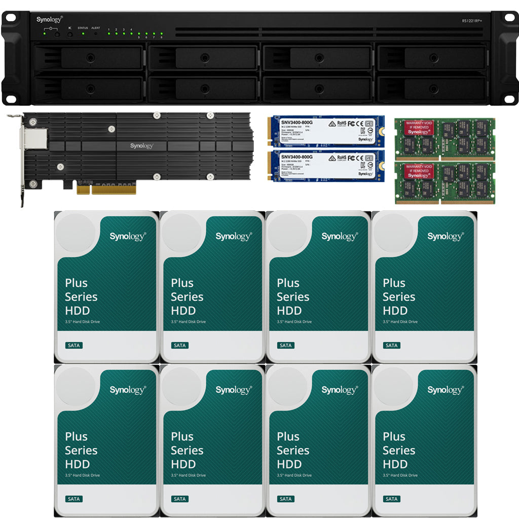 Synology RS1221RP+ RackStation with 32GB RAM 1.6TB (2x800GB) Cache, 1-Port 10GbE Adapter and 64TB (8 x 8TB) of Synology Plus NAS Drives Fully Assembled and Tested